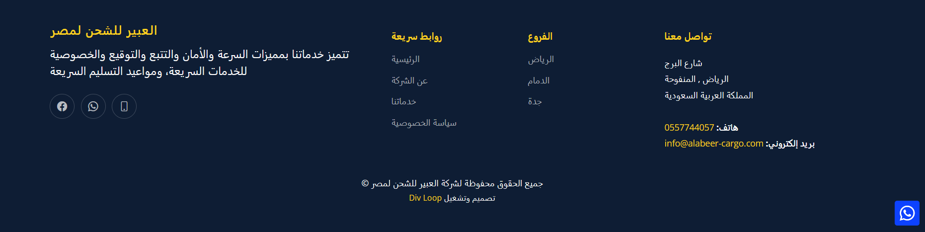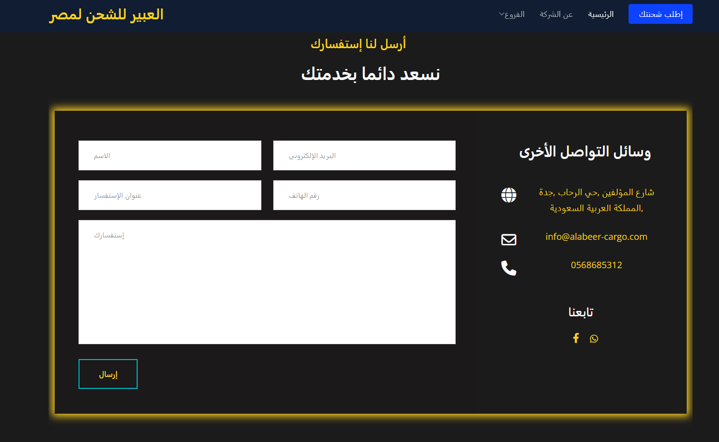 إجتمع فريقنا ووضع التصور المناسب للموقع الإكتروني وذلك بالتشاور وبالتفاهم مع المسؤول لدى شركة العبير للشحن لمصر وبعد الوصول لرؤية مشتركة قام فريقنا بالبدء في وضع الكود البرمجي الأول لإنشاء موقع العميل وقمنا بإنجازه في وقت قياسي.